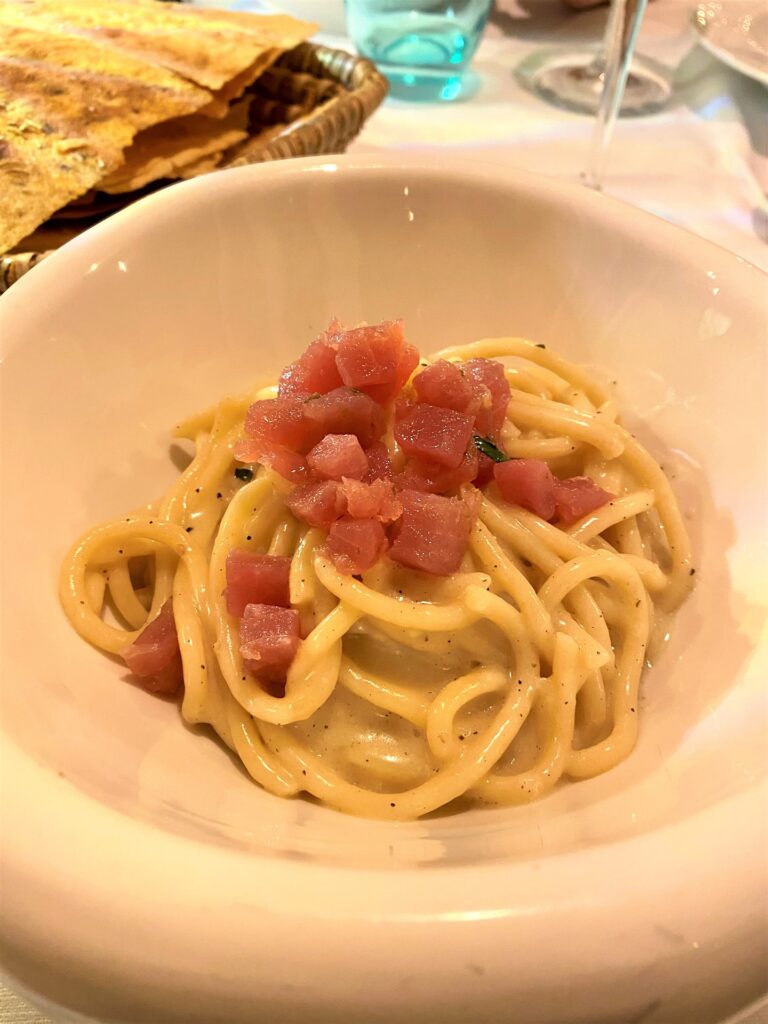 Per chi volesse, l’ Assaggio offre altri piatti di pesce tradizionali come la fregola sarda o rivistati come la cacio e pepe con tartare di tonno.